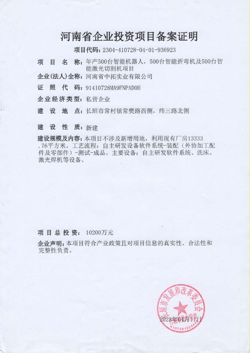 • 大圣智能折彎?rùn)C(jī),機(jī)械臂,激光切割機(jī)工廠備案證明